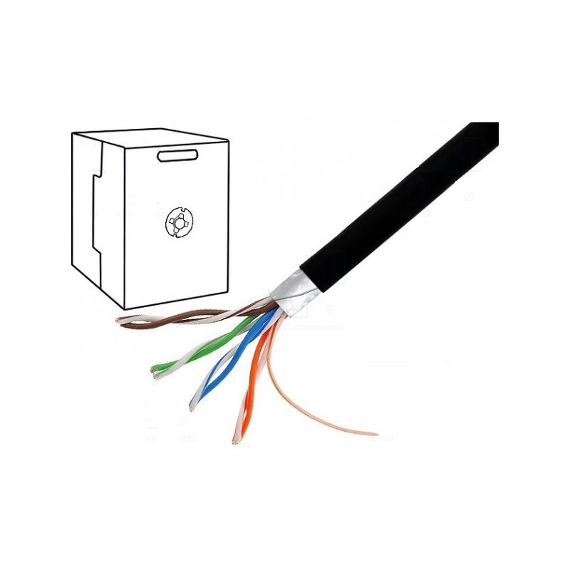 Kábel - CAT5E Exteriérový F/UTP Drôt CU/AL/PET fólia_do 1GB_Ø 6,2mm_4x2xAWG24_300MHz_čierny (1m)...