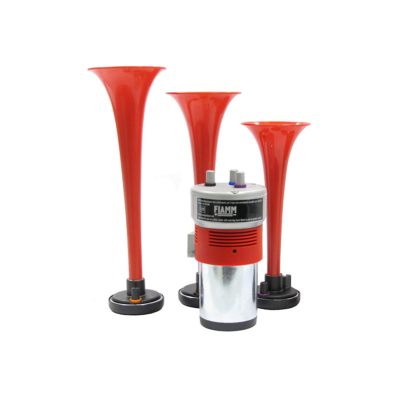 3-trubkové fanfáry poháněné vzduchovým kompresorem se silným a okamžitým zvukem. V sadě je malý kompresor a 3 trumpety, které zní současně. Aftermarketová sada, k dispozici v blistru značky FIAMM, obsahuje vše potřebné pro instalaci. Souprava je určena především pro osobní automobily, motocykly a nákladní auta na 12V.