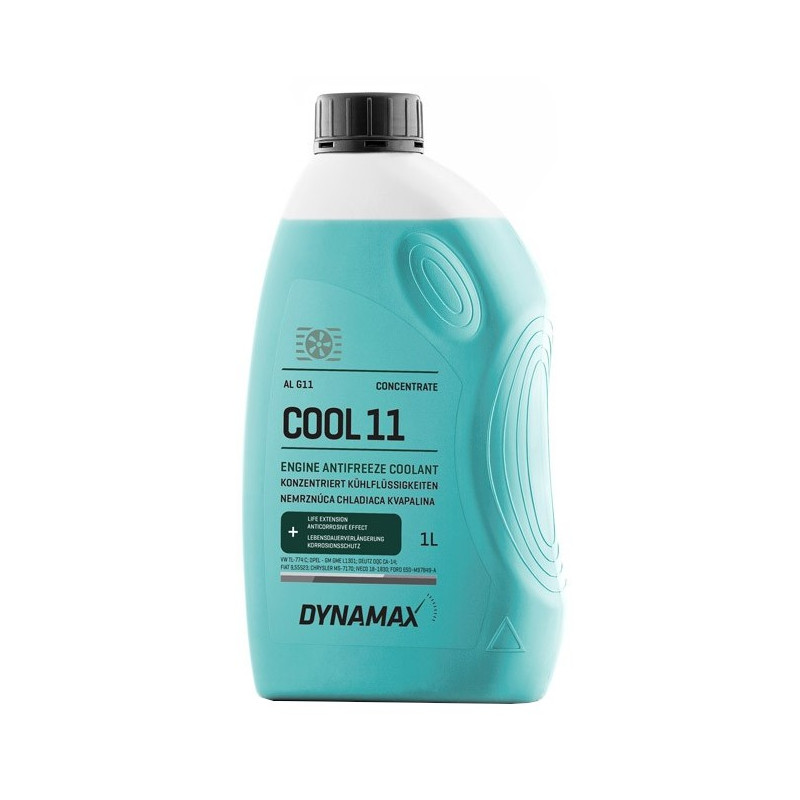 ► DYNAMAX COOL G11R je koncentrát nízkotuhnúcej kvapaliny pre chladiace systémy na báze etylénglykolu určený do chladičov motorov z ľahkých zliatin. Celoročne chráni chladiaci systém auta pred pôsobením mrazu a pred koróziou. Zaručuje veľmi dobrý prevod tepla. Obsahuje vysokoúčinné inhibítory korózie pre ochranu chladiaceho systému.