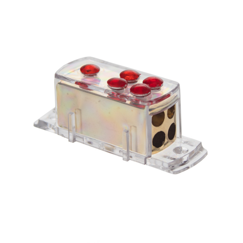 Zlacená svorka pólu se svorkovnicí - (baterie) 1 x 50, 1 x 20, 2 x 10 mm².