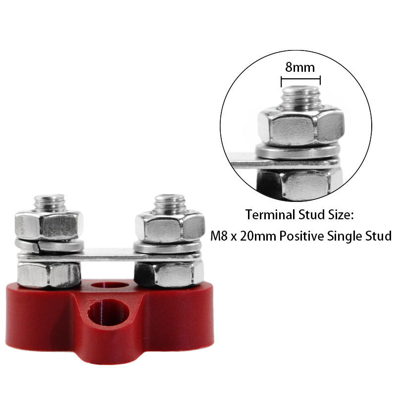 Zlacená svorka pólu se svorkovnicí + (baterie) 2 x 8,5 mm².