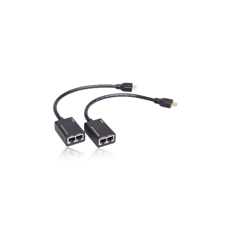 ► Redukcia z HDMI na RJ45 a späť sa používa pre predĺženie HDMI kábla. Pomocou týchto dvoch redukciou a dvoch káblov CAT-5e / 6 s konektormi RJ45 môžete zvýšiť vzdialenosť prepojovaných zariadení až na 30m