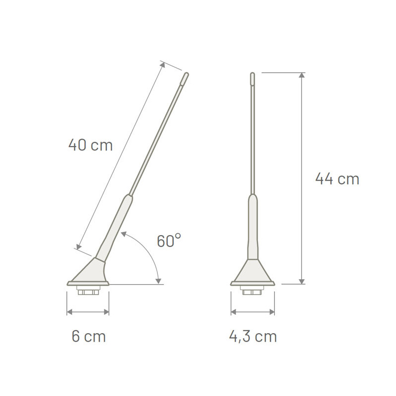 ► AM/FM strešná anténa so zosilovačom na zadná časť strechy ► uhol sklonu: 76° ► dĺžka prútu: 40 cm ► rozmery základne: 6x4,3cm ► dodávané bez anténneho kábla. V balení iba 20cm kábla po spojku ► konektor na spojke:: Hirschmann (skrutkovací závit M10) ► inštalácia do kruhového otvoru (Ø19mm), alebo štvorcového otvoru (15x15mm) ► Vhodné pre automobily s koncovkou HIRSCHMAN (vždy najskôr potrebné skontrolovať): * BMW Mini (2001->) * OPEL Agila * OPEL Astra(1998->) * OPEL Vectra Vagon * OPEL Corsa (2003->) * OPEL Signum * ŠKODA Felicia