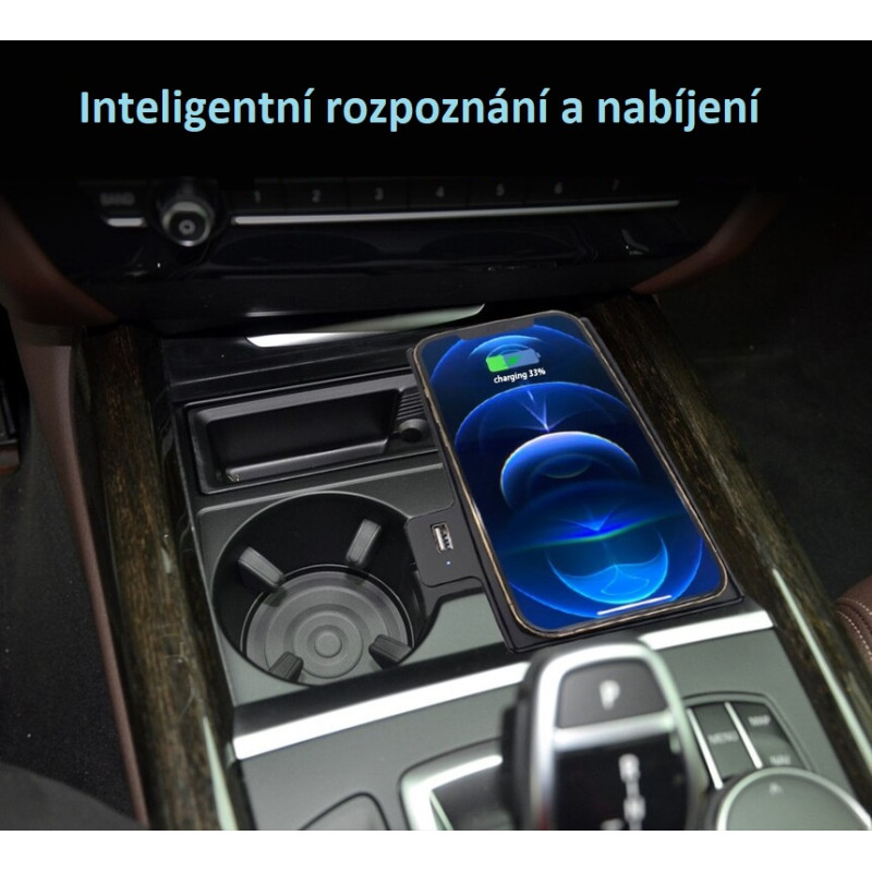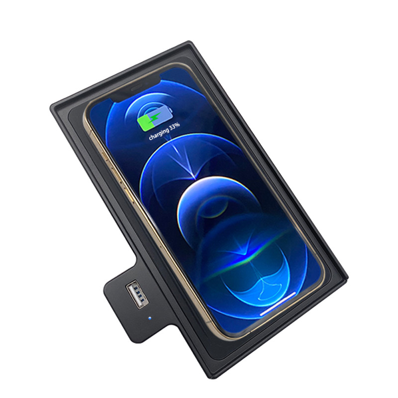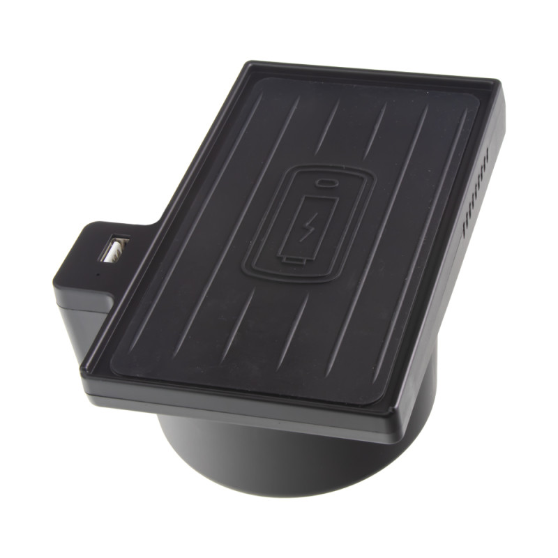 Nabíjecí přihrádka pro bezdrátové dobíjení mobilních telefonů prostřednictvím technologie Qi.