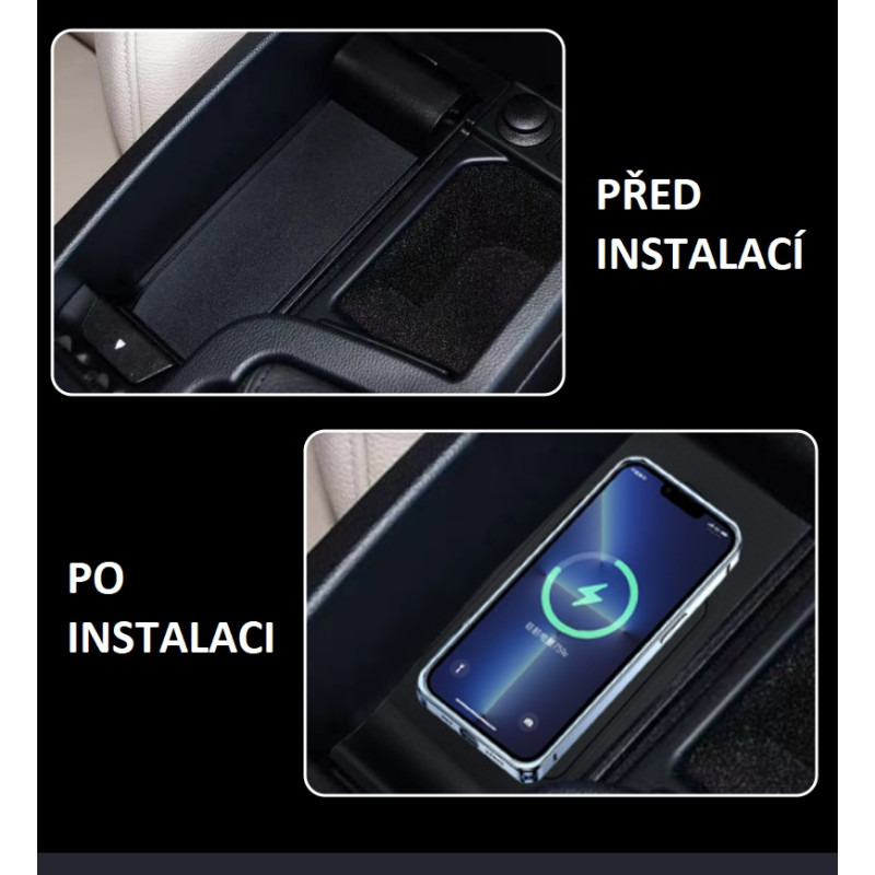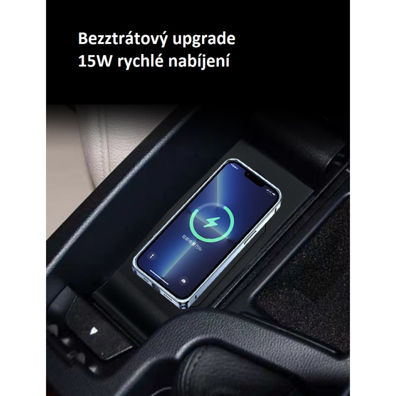 Nabíjecí přihrádka pro bezdrátové dobíjení mobilních telefonů prostřednictvím technologie Qi.
