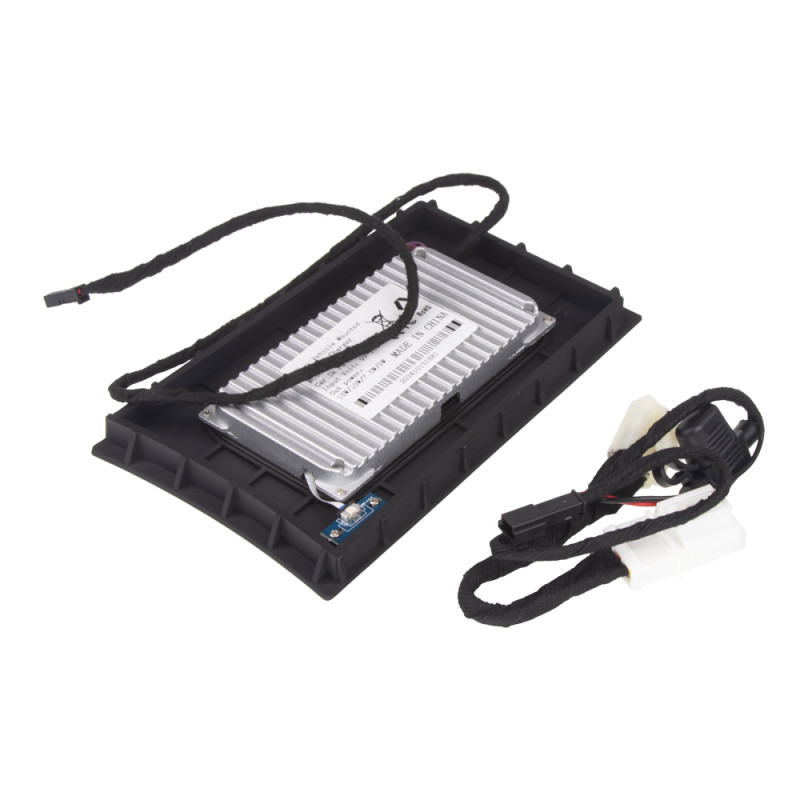 Nabíjecí přihrádka pro bezdrátové dobíjení mobilních telefonů prostřednictvím technologie Qi.