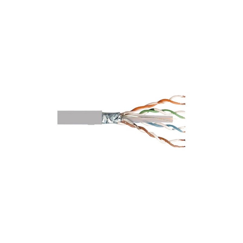 8-žilový FTP kábel s krútenými pármi a tienením, aby bol menej zraniteľný voči vonkajším elektrickým vplyvom pre štruktúrovanú kabeláž na prevádzku (napr. GigabitEthernet) v prostredí, kde je možné elktormagnetické rušenie