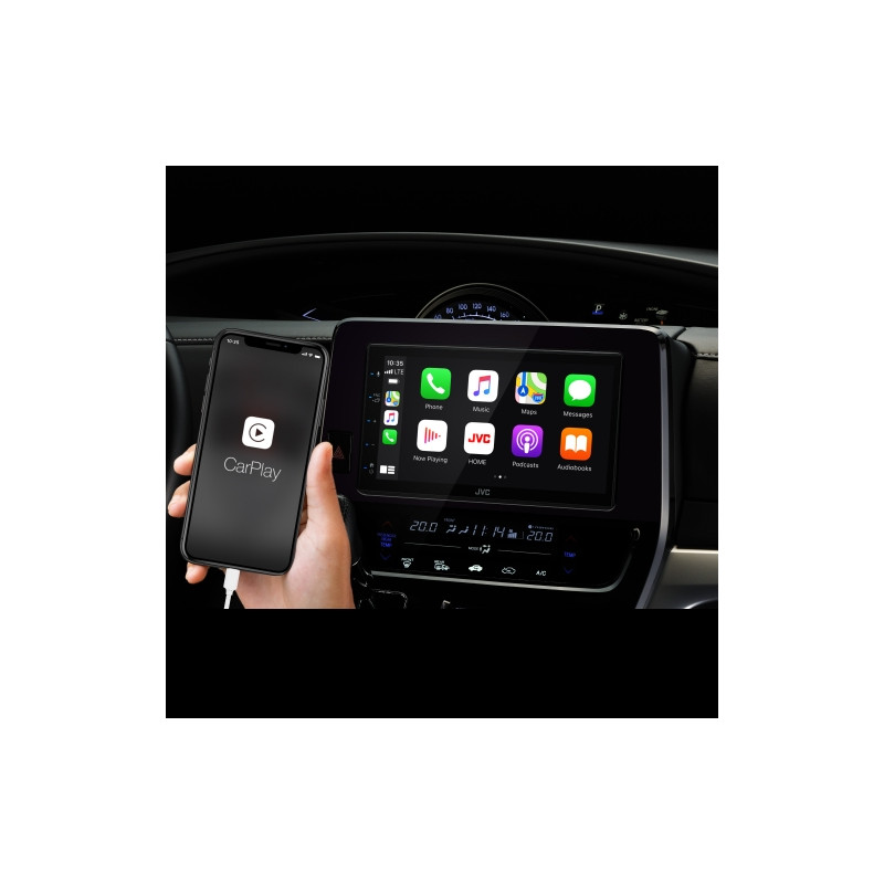 S multimediálním přijímačem JVC se věci ještě lépe - prostě promluvte se Siri nebo se dotkněte displeje přijímače a získáte pokyny z aplikace Apple Map, telefonujte, poslouchejte hlasovou schránku, posílejte a přijímáte texty a poslouchejte hudbu všemi způsobem, který vám umožňuje zůstat soustředěný na silnici.
