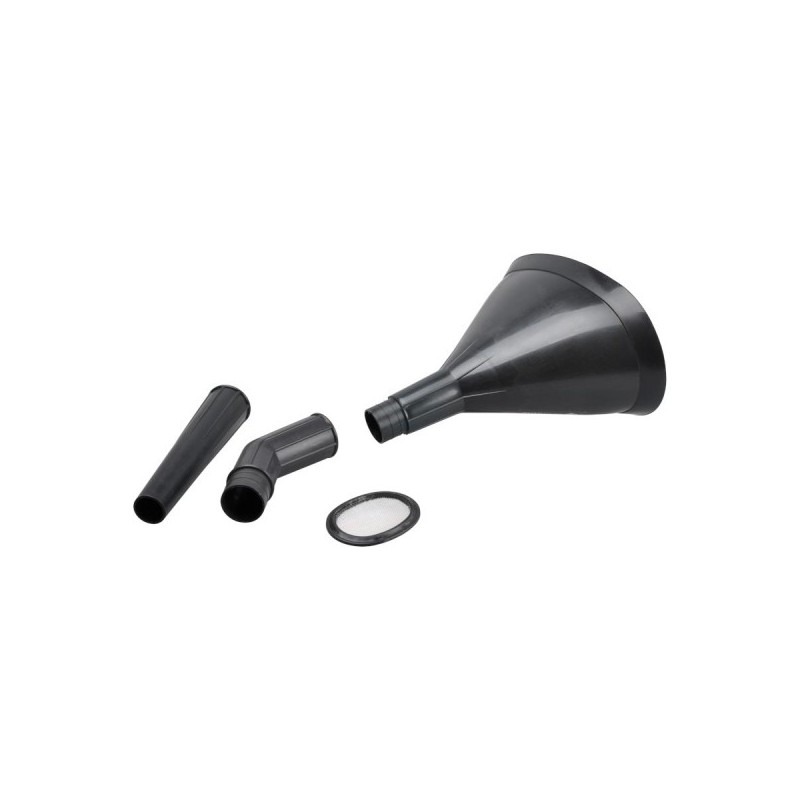 ► Plastový lievik so zabudovaným sitkom a ohybným lievikom. Predovšetkým je vhodný pre nalievanie benzínu, oleja, vody a ďalších látok