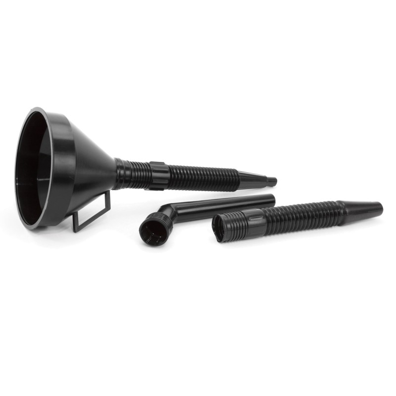 ► Plastový lievik so zabudovaným sitkom a ohybným lievikom. Predovšetkým je vhodný pre nalievanie benzínu, oleja, vody a ďalších látok