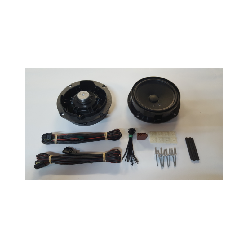► Sada 2 ks 165 mm predných širokopásmových a 2 ks výškových reproduktorov, na mieru do originálnych otvorov v predných dverách vozidiel Škodu Fabia I + prepojovacia kabeláž s originálnymi konektormi + potrebný montážny materiál