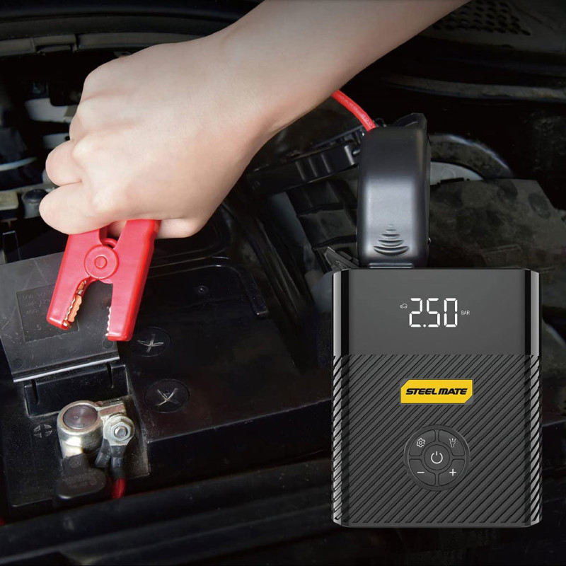 ► Štartovacie zariadenie je schopné dodávať značné množstvo prúdu na štartovanie áut, ľahkých nákladných áut, štvorkoliek, lodí, záhradnej techniky a iných 12V spotrebičov. Tri LED diódy stavu batérie indikujú úroveň nabitia batérie, ukazujú, kedy sa zariadenie nabíja a kedy je úplne nabité. Zariadenie má 12V DC zásuvku pre zapaľovač cigariet a 5V USB zásuvku, ktoré možno použiť na napájanie príslušenstva alebo nabíjanie elektronických zariadení, ako sú mobilné telefóny a MP3 prehrávače. Zariadenie má tiež zvukový alarm a LED diódu stavu pripojenia, ktorá sa rozsvieti, ak je zariadenie nesprávne pripojené, a kontrolku prevádzky / alarmu, ktorú možno nastaviť na stále zapnutý alebo blikajúci režim.
