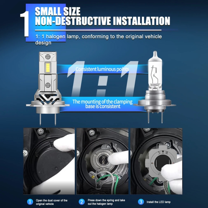 Instalace a deinstalace LED žárovek je velice jednoduchá a rychlá, lze kdykoliv vrátit zpět původní halogenové žárovky např. před návštěvou STK nebo při prodeji vozu.