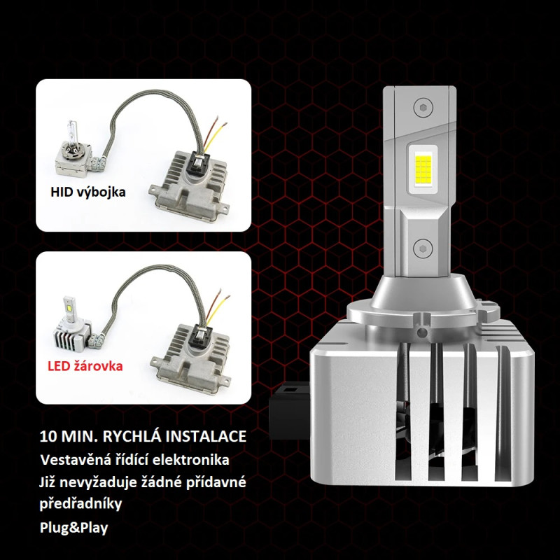 Instalace a deinstalace LED žárovek je velice jednoduchá a rychlá, lze kdykoliv vrátit zpět původní výbojky např. před návštěvou STK nebo při prodeji vozu.