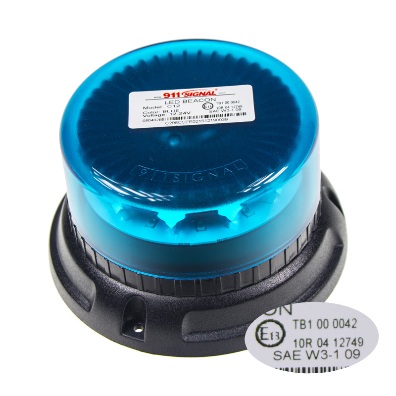 Profesionální modrý LED maják s čirým krytem a s výrazným výstražným efektem, speciální optika na bázi fresnelových čoček. Určen pro pevnou montáž.