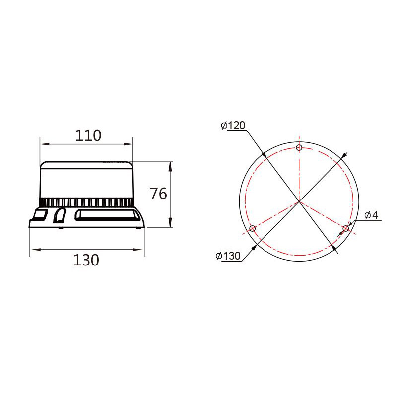 • rozměry: průměr základny 133 mm, průměr majáku 110 mm, výška 76 mm