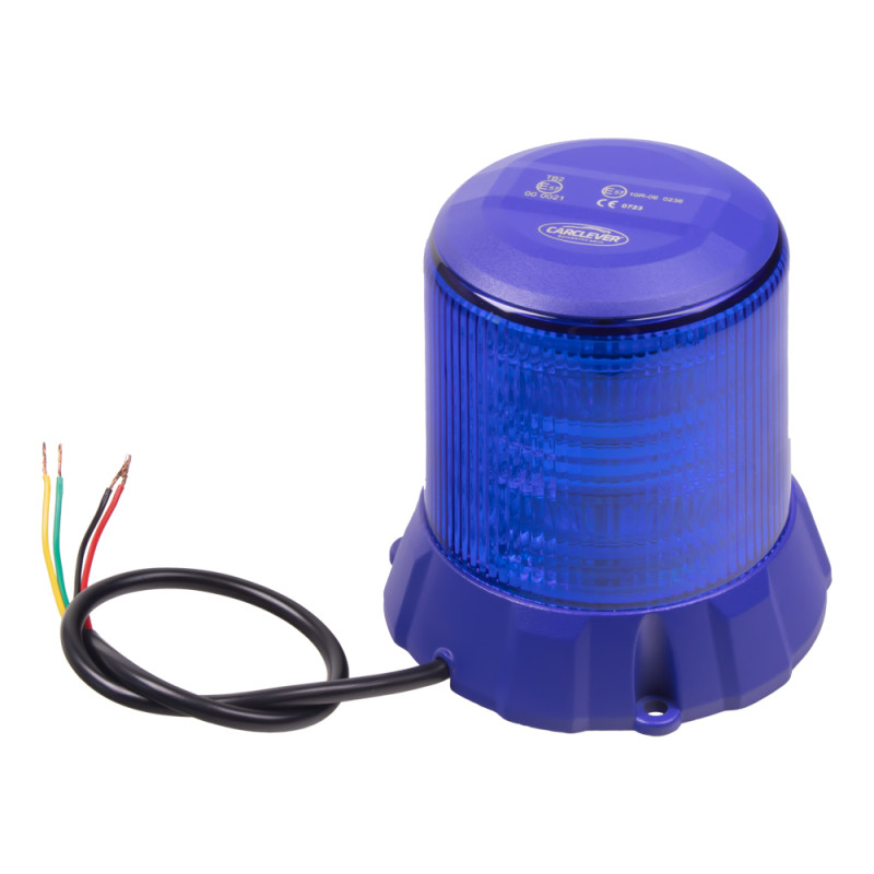 Profesionální modrý LED maják s výrazným výstražným efektem, speciální optika. Určen pro pevnou montáž.