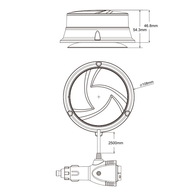• délka kabelu 25 cm bez CL zásuvky, ovládání režimů přepínačem uvnitř majáku