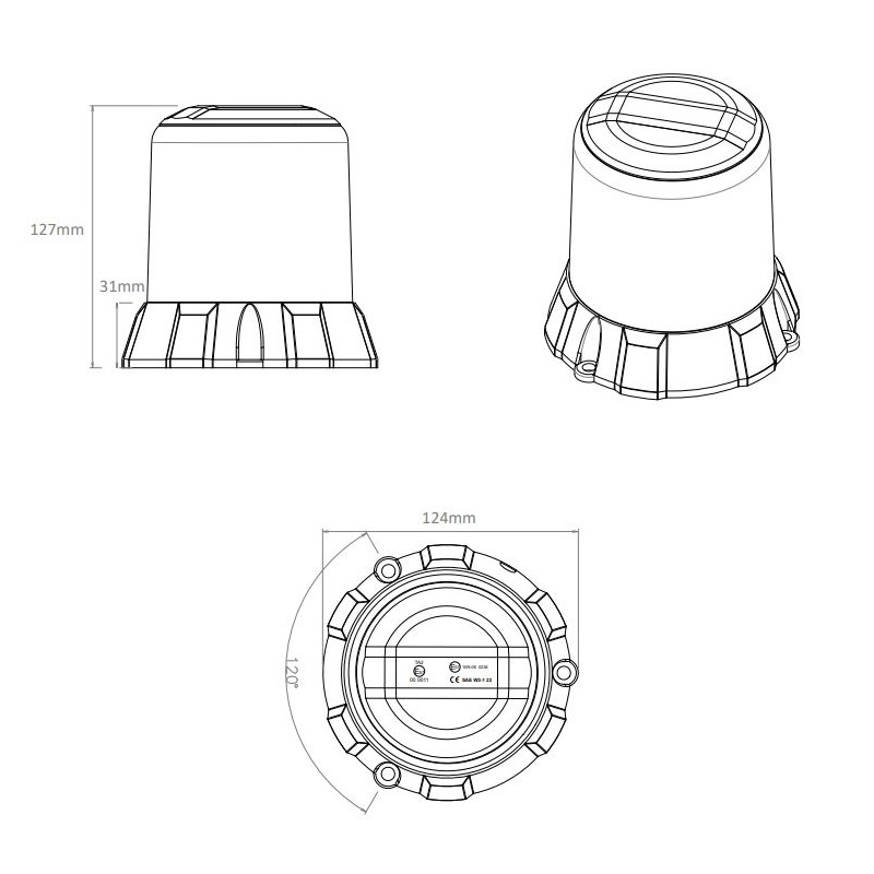 • rozměry: průměr základny 150 mm, průměr krytu 108 mm, výška 56 mm