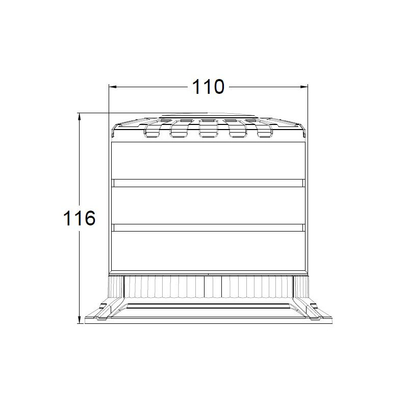 • rozměry: průměr základny 136 mm, průměr krytu 110 mm, výška 116 mm