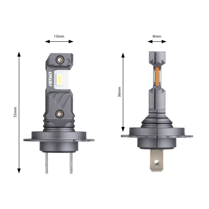 ► LED žiarovky H7 série H sa vyznačujú veľmi vysokou kvalitou. Navrhovaný produkt vyžaruje jasnejšie a koncentrovanejšie svetlo, čo umožňuje lepšiu viditeľnosť vozovky v obmedzených svetelných podmienkach, ako je súmrak, hmla alebo dážď. Svetelné zdroje vyrobené technológiou CSP sú efektívnejšie v procese premeny elektriny na viditeľné svetlo v porovnaní s tradičnými halogénovými žiarovkami. LED žiarovky sú odolnejšie voči otrasom a vibráciám, čo znamená, že vydržia dlhšie ako halogénové žiarovky