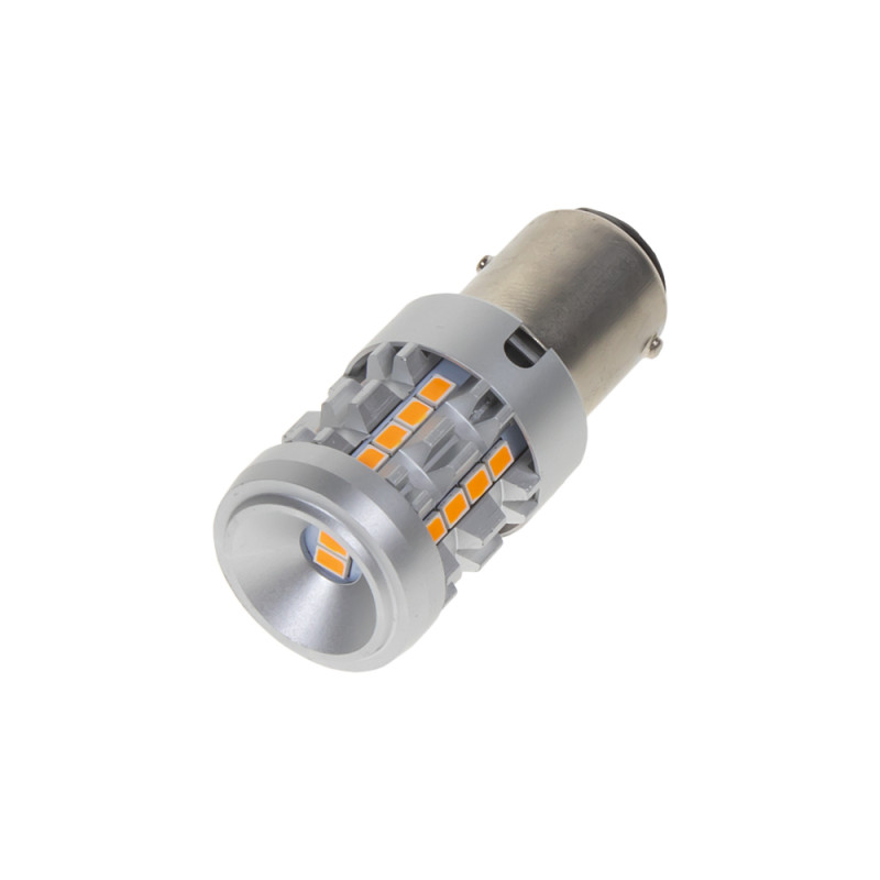 ► Nová generácia A-CLASS LED autožiaroviek s päticou BAY15D (dvojvlákno), oranžová. Technické parametre ► pätica BA15S ► farba svetla oranžová ► Svetelný zdroj: 26x SMD LED 3020 ► svetelný tok (skutočný) 1200/200 LM ► 360º uhol svietenia ► telo z leteckého hliníka zaisťuje výborný odvod tepla ► vstavaná elektronika stráži konštantný prúd ► veľmi dlhá životnosť (až 50 000 h) ► odolné otrasom, častému zapínaniu a vypínaniu ► napájacie napätie 9 - 30 V ► prúdový odber 2A po dobu 120s, potom klesne na 0,9A ► pracovná teplota -40⁰C - +85⁰C ► rozmer žiarovky: ø 20 mm, dĺžka 48 mm ► cena za 2 ks (pár) Vlastnosti ► vynikajúce do vozidiel, kde dochádza k častému praskaniu klasických žiaroviek ► vysoká svietivosť ► pre všetky osobné vozidlá, dodávky a motocykle s palubným napätím 12 V ► vzhľadom k vyššiemu odberu prúdu nehlási vo väčšine vozidiel so strážením žiaroviek chybu