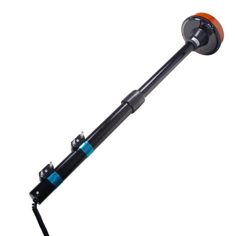 Profesionální modrý LED maják s výrazným výstražným efektem, s teleskopickou tyčí, určen pro montáž na motocykl.