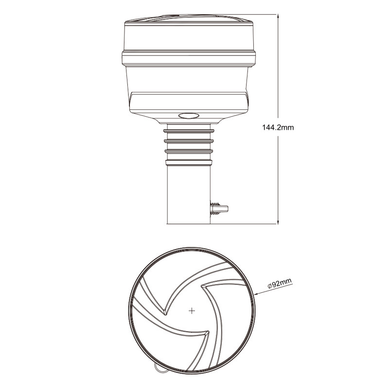 Výstražný oranžový maják s LED technologií a možností zábleskového nebo otočného provozu. Určen pro montáž na držák (hrot). Napájení je realizované pomocí konektoru v hrotu (držáku) majáku, kde jsou volné vodiče pro připojení napájecího napětí.