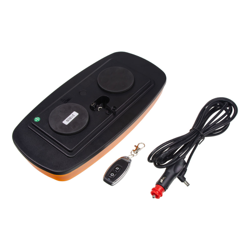 Akumulátorová nabíjecí miniaturní výstražná oranžová LED světelná rampa s pěti režimy blikání. Určen pro uchycení pomocí magnetu.