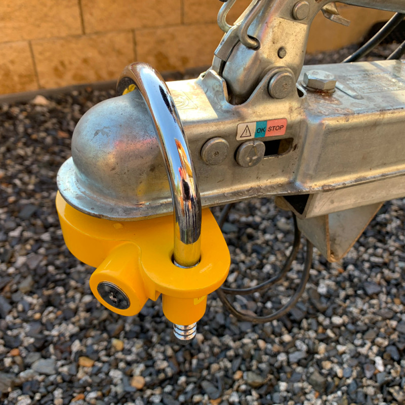 Zámek tažného zařízení slouží k uzamčení přívěsu nebo karavanu a zamezení připojení na automobil.