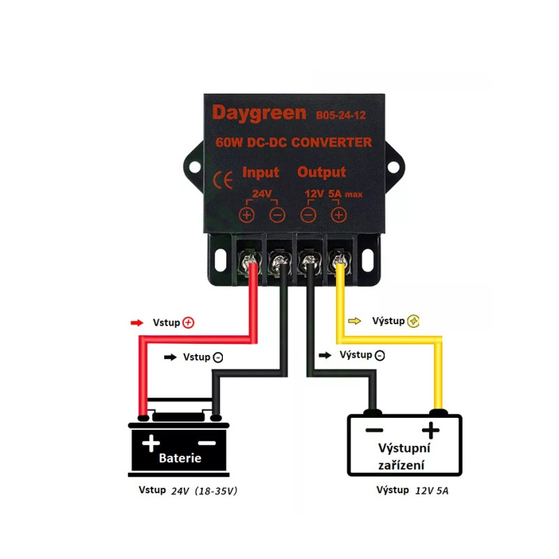 Měnič napětí umožňuje připojení 12 V spotřebičů do vozidla a zařízení s rozvodem 36 V / 48 V.