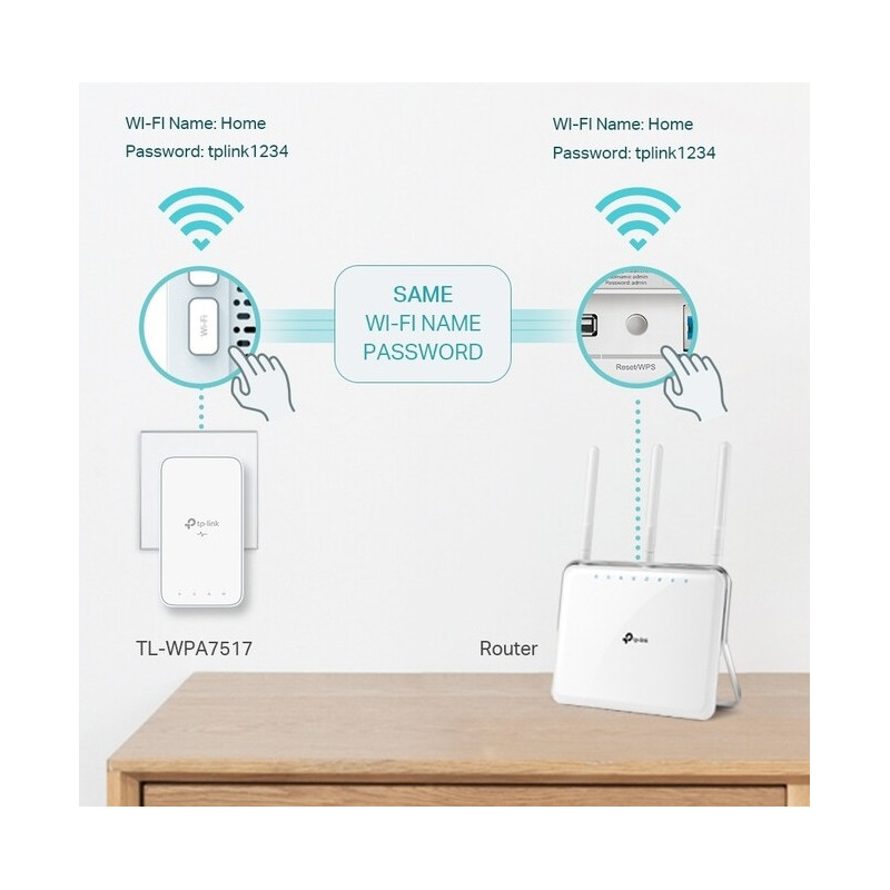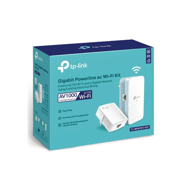 ► Sada adaptérov (TL-WPA7517 a TL-PA717) pre vytvorenie dátovej siete cez domáce elektrické vedenie. Ponúka vysokorýchlostný prenos dát rýchlosťou až 1 000 Mbit / s na vzdialenosť až 300 metrov. Podporuje dvojpásmovou Wi-Fi sieť 802.11ac (433 Mbit / zv pásme 5 GHz a 300 Mbit / zv pásme 2,4 GHz), ponúka tiež gigabitový ethernetový port.