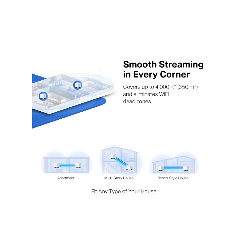 ► Deco S7 je výkonný Mesh systém AC1900 s Wi-Fi pre celoplošné pokrytie domácnosti. Deco S7 ponúka jednoduchý spôsob, ako zaistiť silný WiFi signál v každom rohu vášho domu, na ploche až 195 m2 (sada s 1 jednotkou). Bezdrôtové pripojenia a voliteľné chrbticové ethernetové pripojenie pracujú spoločne na prepojení jednotiek Deco, vďaka čomu bude vaša sieť rýchlejšia a zaistí neprerušované pripojenie všetkých zariadení