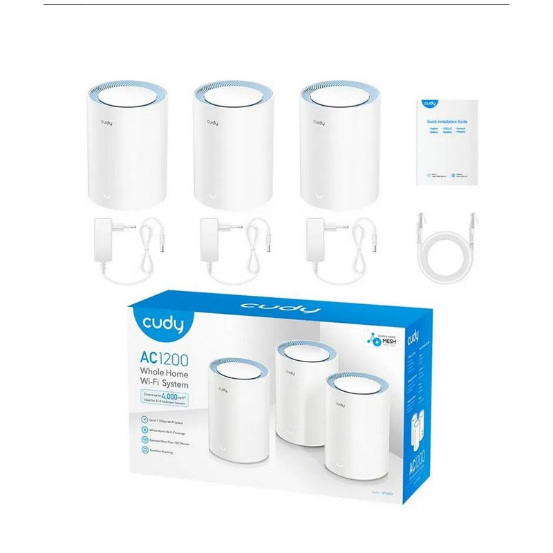 ► ento systém Cudy zaistí stabilný signál všade, kde budete potrebovať. WiFi systém Cudy funguje s frekvenciou 2,4 GHz a 5 GHz. O prenesené dáta nebudete musieť mať strach, keďže sú zabezpečované šifrovaním WPA-PSK a WPA2-PSK. V balení okrem WiFi systému objavíte aj ethernetový kábel. Funkciou WiFi Mesh dokážete signál prijať signál aj v odľahlých miestach domu. Tento systém je vybavený štandardom WiFi 5.