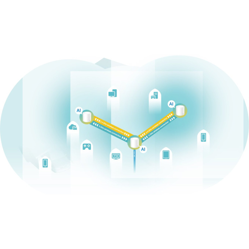 ► Systém Mesh s umelou inteligenciou: inteligentná analýza sieťového prostredia zaistí ideálne pokrytie Wi-Fi šité na mieru vašej domácnosti