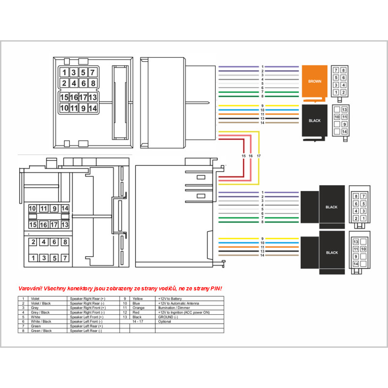 Určeno pro starší vozy Nissan do r. 2000 se dvěmi konektory autorádia (10 + 6 pinů).