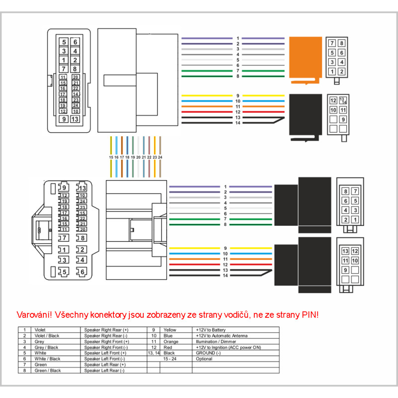 Určeno pro vozy MITSUBISHI s 14-ti pólovým připojovacím konektorem rádia.