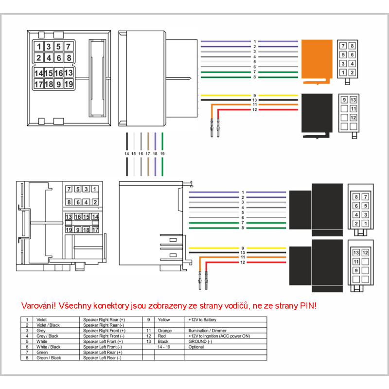 Určeno pro vozy SUBARU s 14-ti pólovým připojovacím konektorem rádia.