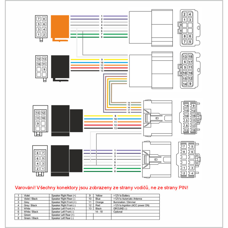 Určeno pro vozy MITSUBISHI s 14-ti pólovým připojovacím konektorem rádia.