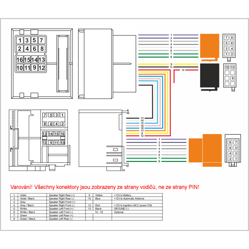 Určeno pro vozy MITSUBISHI s 14-ti pólovým připojovacím konektorem rádia.