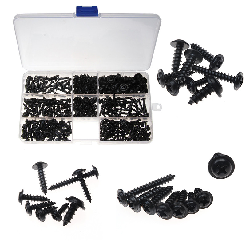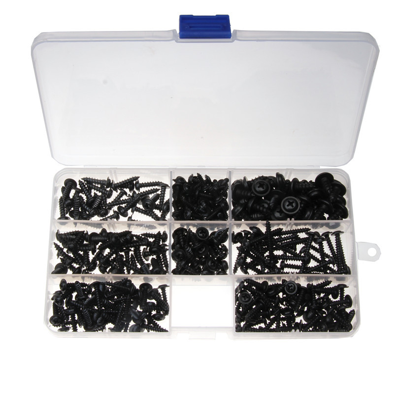 Sada samořezných nerezových šroubů s kulatou hlavou, 340 ks.