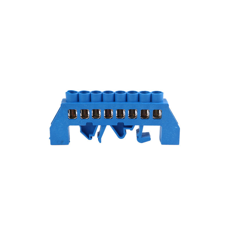 ► Izolovaná distribučná prípojnica pre neutrálny (modrý) kábel. Používa sa v elektrických rozvádzačoch na umožnenie distribúcie energie a kabeláže. Izolácia prípojnice znižuje riziko náhodného zemného spojenia. Táto distribučná zbernica je vhodná na inštaláciu na DIN lištu alebo montážnu dosku