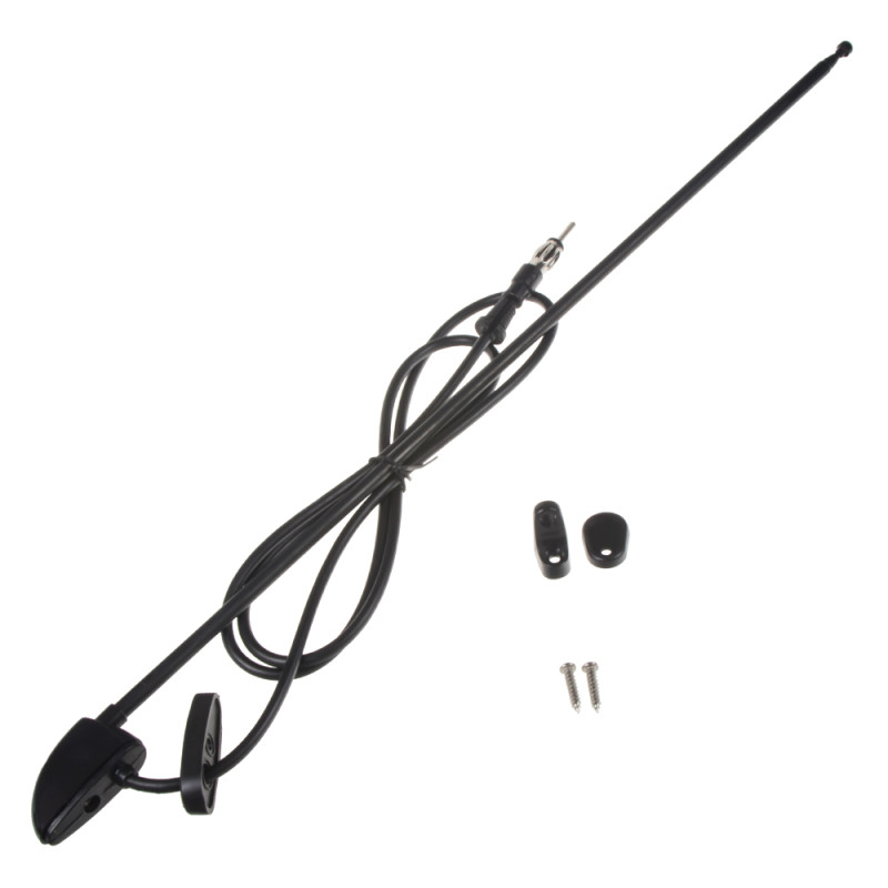 Teleskopická anténa AM-FM do vozu Volkswagen Golf III, chromová, 4 sekce, délka 85 cm, délka kabelu 140 cm.