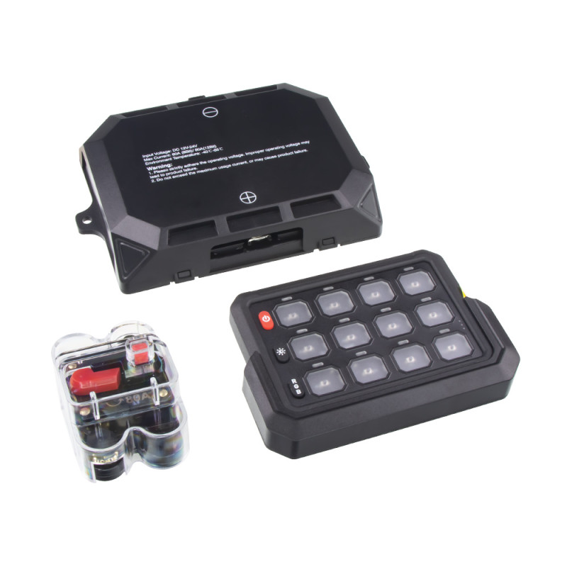 Snadno nainstalujete do 12 V a 24 V vozidel. Je vhodný pro různé typy automobilů, terénní vozidla, pickupy, nákladní vozy atd. Různé spínače pro ovládání obecného elektrického vybavení ve vozidle: světlomety a jiná zařízení. Ovládací panel lze instalovat na přístrojovou desku, středovou konzolu, sedadlo, strop, A-sloupek ve vozidle atd.