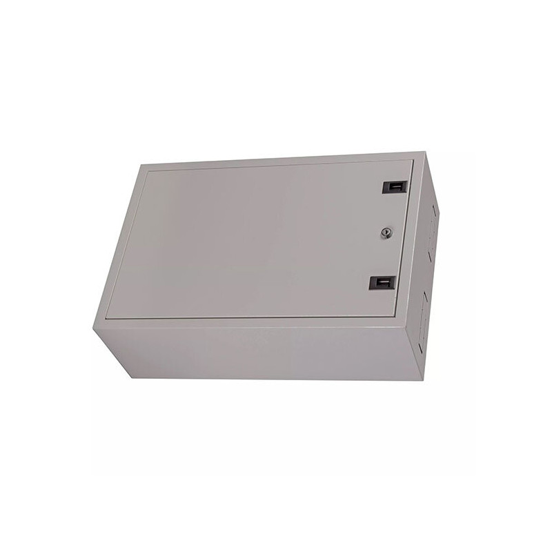 ► Inštalačná závesná kovová skriňa s odvetraním vo vrchnej a spodnej časti a možnosťou prechodu káblov po vylomení predpripravených okrúhlych otvorov medzi odvetraním