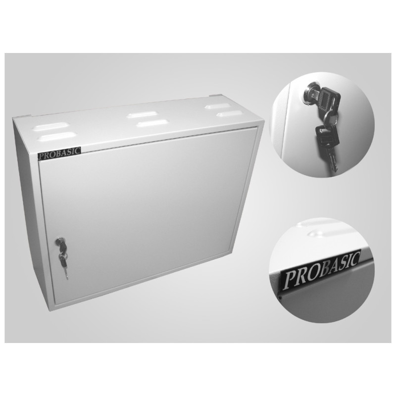 ► Celokovová uzamykateľná rozvodná skriňa pre vnútorné použitie v bielej farbe s rozmermi 500x500x200mm disponuje niekoľkými vylamovacími otvormi na hornej a spodnej strane. Uchytenie na stenu 4 montážnymi otvormi na zadnej strane skrine