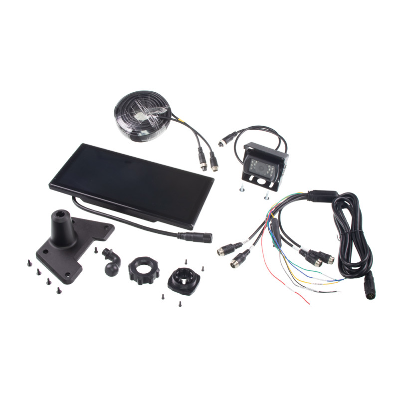 Obsah balení: Monitor, držák pro pevnou montáž + oboustranná páska, napájecí kabel s CL pro připojení na palubní napětí , zadní 4PIN kamera + 4PIN/2,5mm 15m propojovací kabel.
