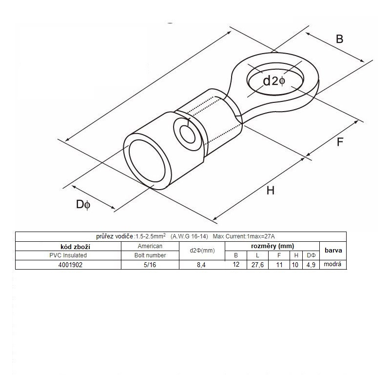 • možnost vložit kabel 4 mm2 - 12 mm2 (12, 10, 8, 6 AWG)