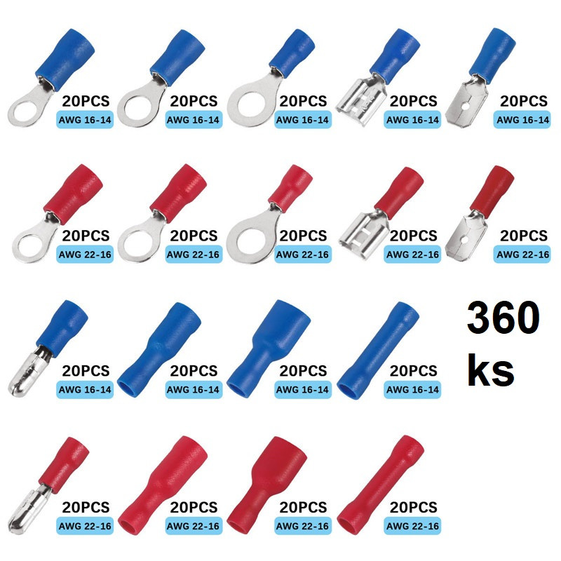 Sada izolovaných lisovacích konektorů, 360 ks.