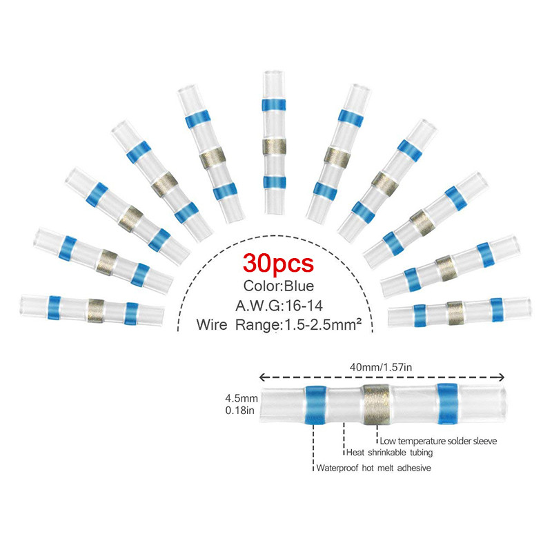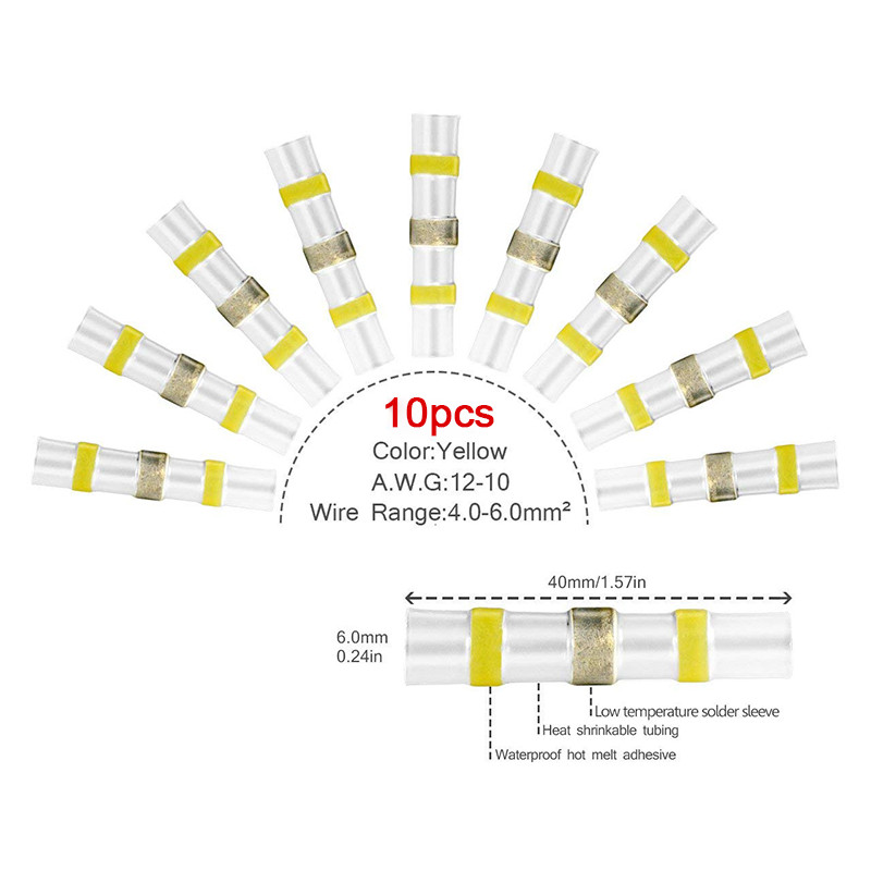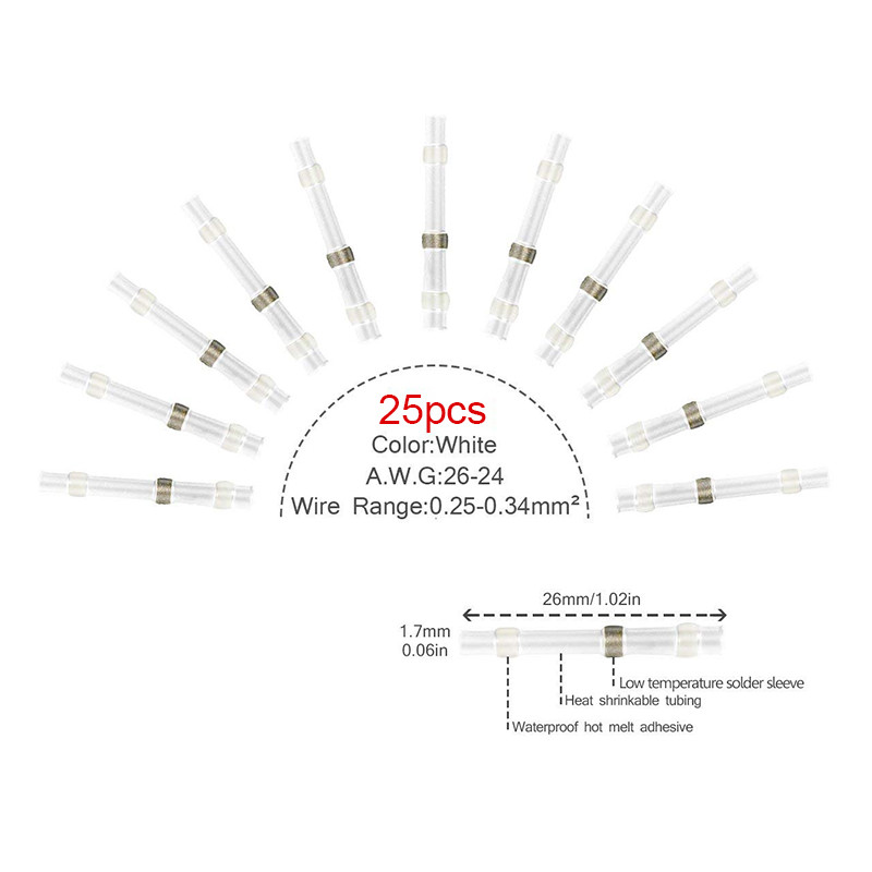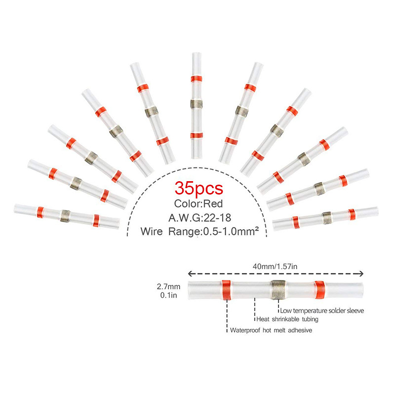 Sada vodotěsných smršťovacích spojek s cínem. Určeno pro vodotěsné spojení vodičů bez nutnosti pájení.